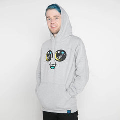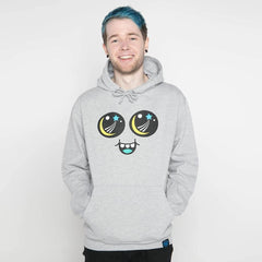DanTDM grey hoodie with shooting star eyes and cheeky smile design on the front. Finished off with the official DanTDM logo loop label on the hem.
