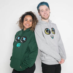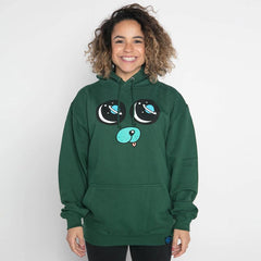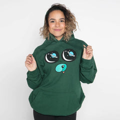 DanTDM bottle green hoodie with Saturn eyes and pug puppy face design on the front. Finished off with the official DanTDM logo loop label on the hem.