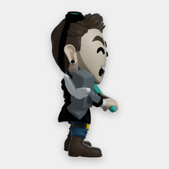 DanTDM returns for his second Youtooz! This time in a scene reminiscent of the final moments of his Minecraft hardcore survival series! Standing at 5” tall, he lets out a terrified open mouth scream as he twists to look over his right shoulder at the Vex attacking him. He wears black goggles with aqua tinted lenses held firmly in place on top of his dark brown hair and brandishes a sharp diamond sword gripped tightly in his right hand. His black robe covers an outfit of a simple green t-shirt and baggy blue pants which are tucked into tall brown boots. The Vex clutches to Dan’s back with its sword raised mid attack and a menacingly gleeful smile radiating across its dark grey face. The exterior of his packaging shows an angelic Dan sitting on a green hill taking in a beautiful golden sunrise. While the interior encases him solidly in the depths of a cobblestone block. The protective sleeve shows a trapped Dan reaching out and attempting (in vain) to escape an oncoming vex. This collectible ships in a matte, embossed, protective outer sleeve and a custom sized plastic protector for maximum protection during shipping.