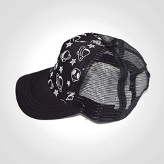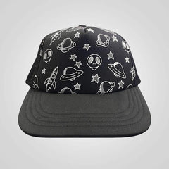 DanTDM space doodles snapback cap with mesh back. Patterned with night stars, aliens, spaceships, planets and rockets. Finished off with the official DanTDM logo label on the rear.