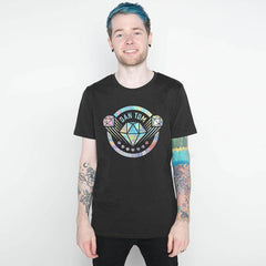 NOTE:Each hologram foil print is a unique, one-of-a-kind, handcrafted garment with a vintage finish. No two garments are alike.